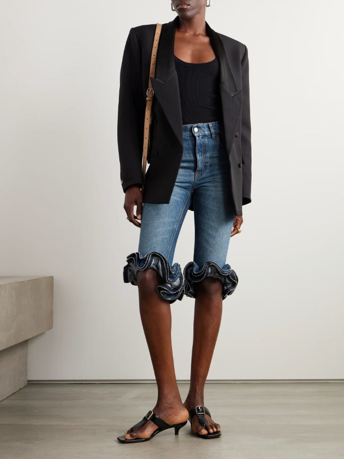 Simon Porte Jacquemus designs with wit and playfulness. His tiny cropped cardigans and micro-bags are FG staples that play with scale. The Vibe: Playful French girl.