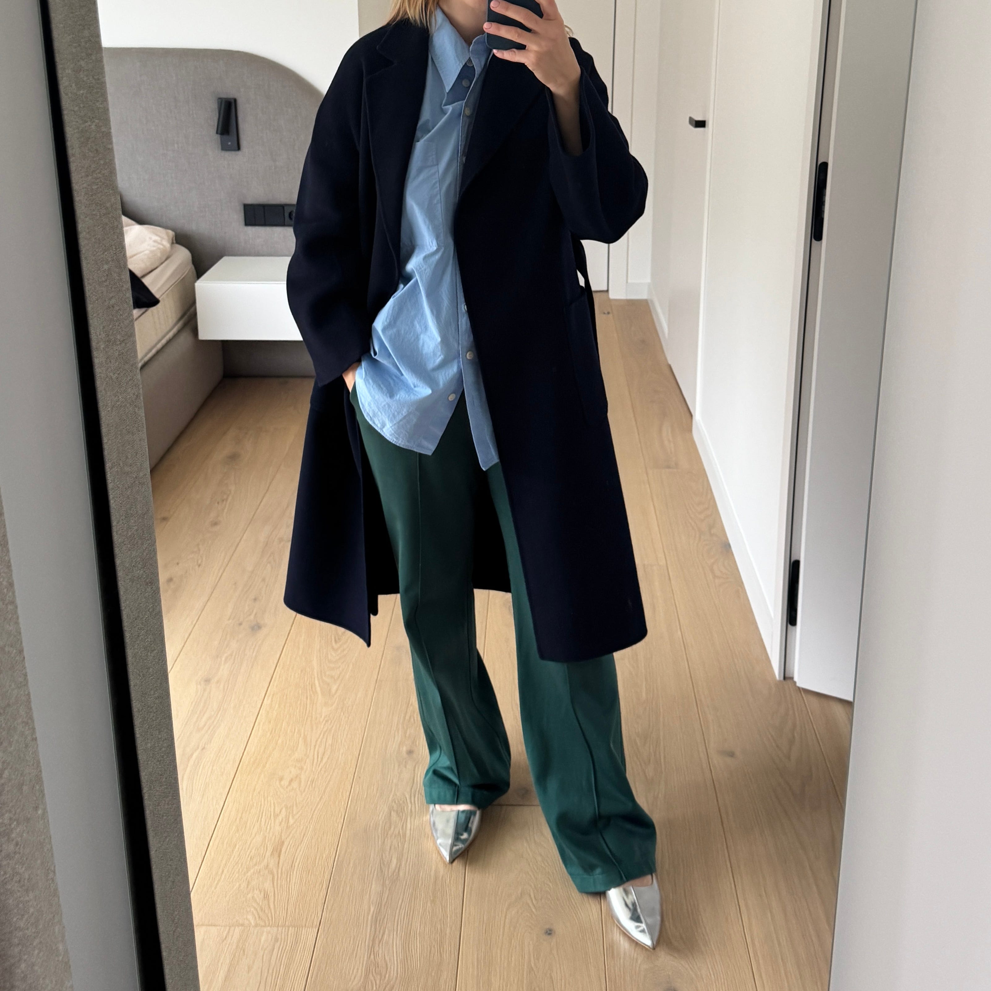 The outfits improved greatly when I added a third element in terms of a navy coat—it seems that green + light blue + navy can carry a lot of combinations and even work with various shades of green.