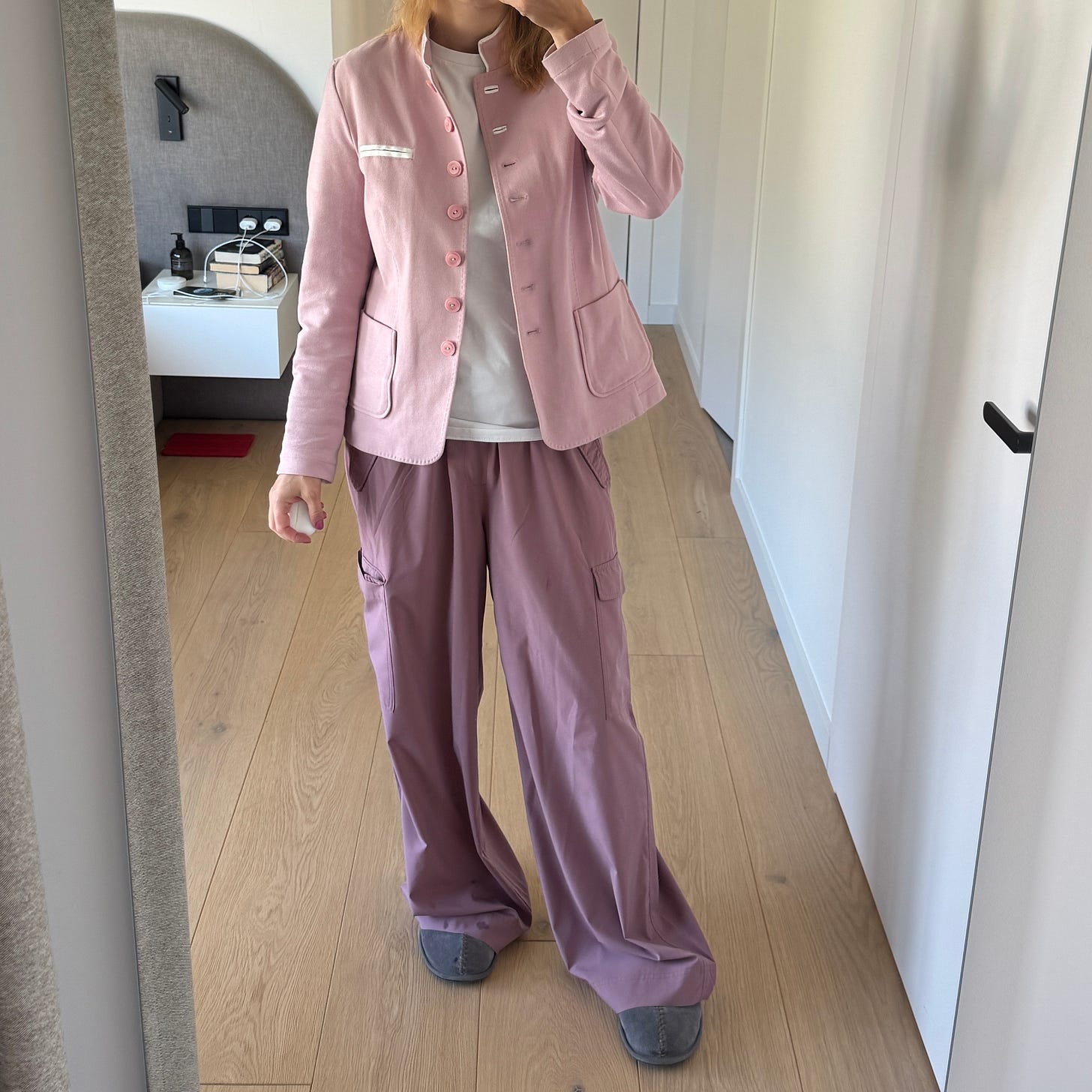 Some of my “no, never” pieces were too worn or too tailored to sell, so I decided to repurpose them for home wear. That annoying pink jacket? It’s now my go-to for WFH. Maybe my home style isn’t the chicest and this is not what Allison would recommend, but at least I’m wearing what I own.