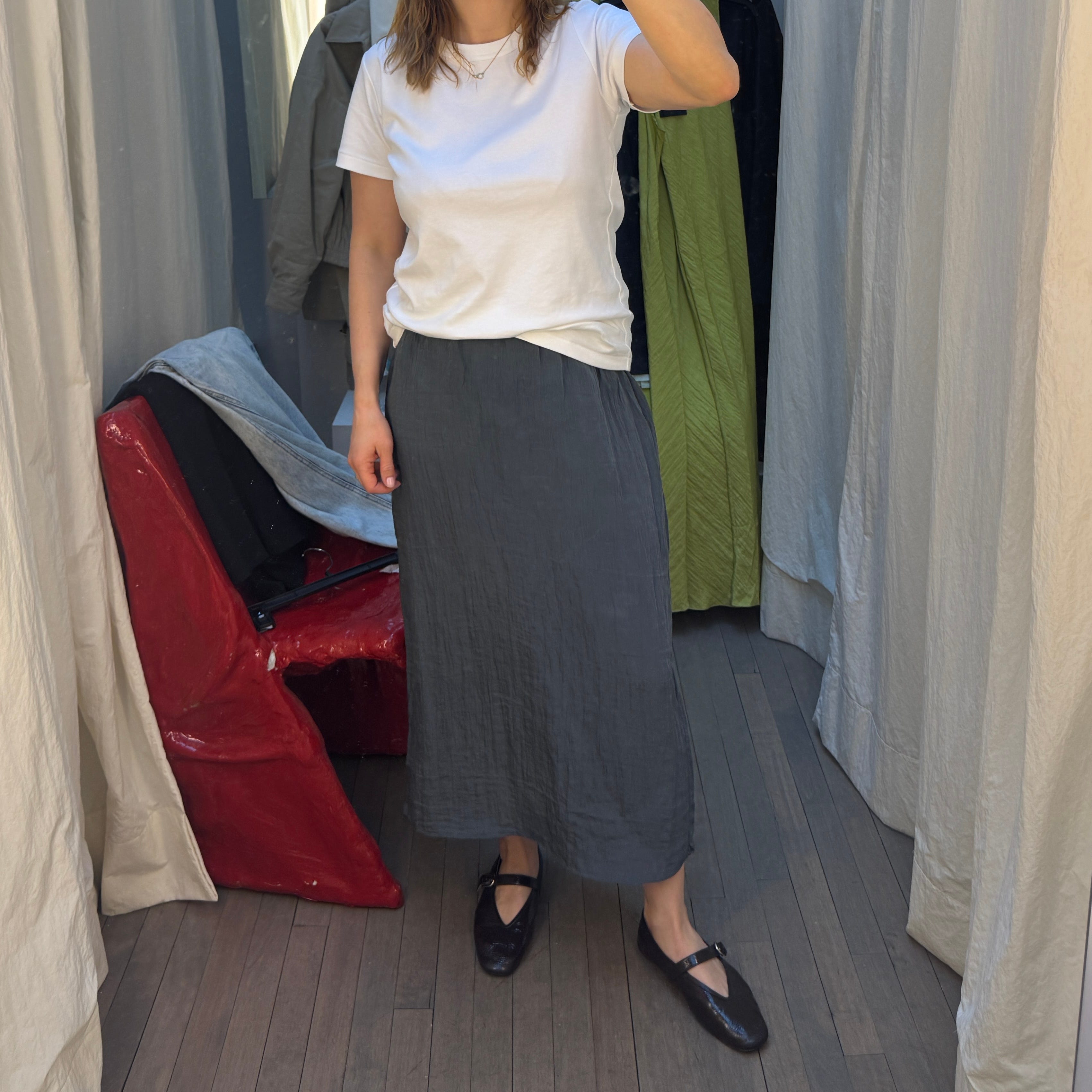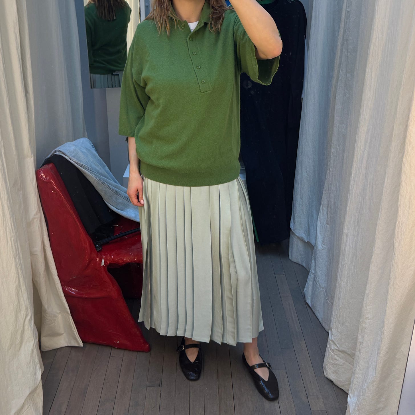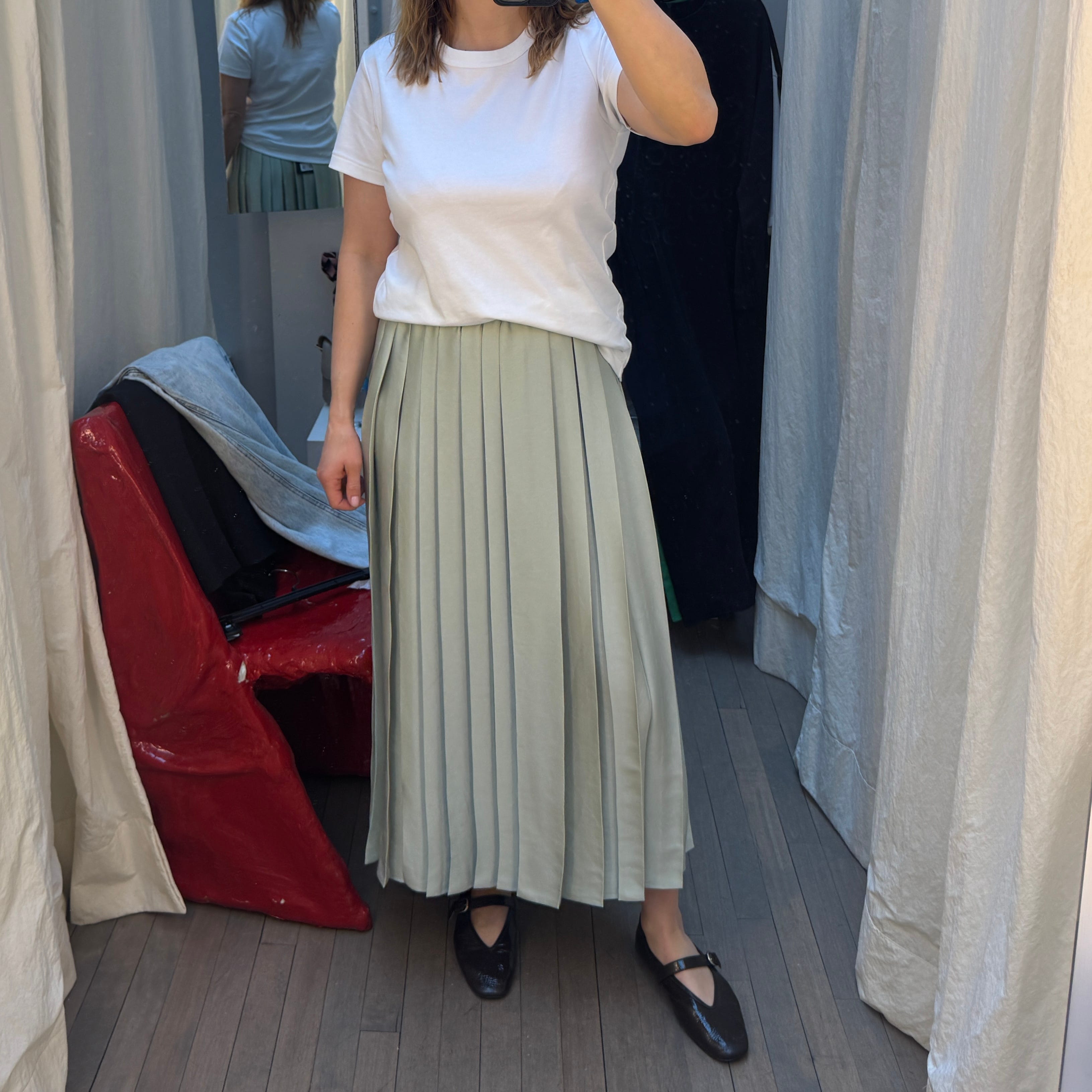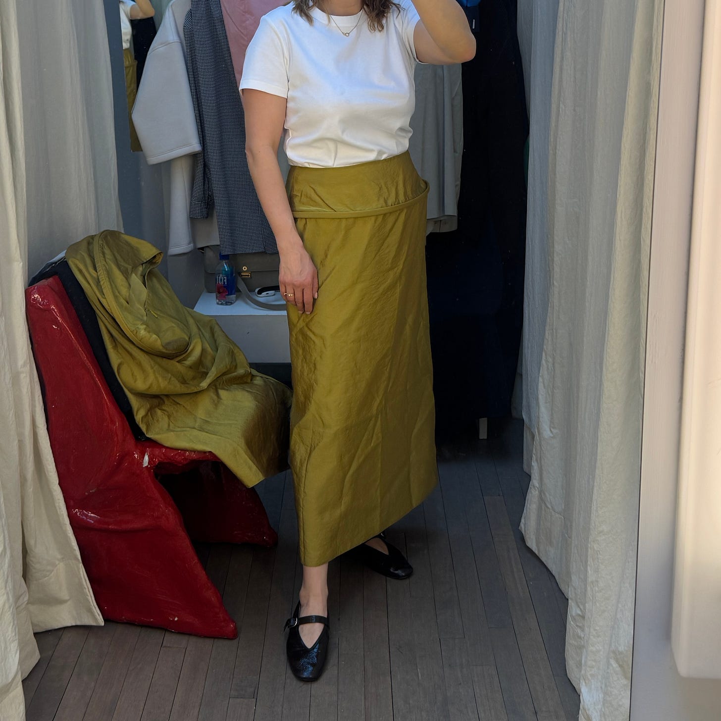 This is a fan-favorite skirt, but I tried it for the first time and was pretty amazed. Despite being pleated, it reads as the least conservative version possible and has this elongating, sporty feel. The subtle sheen is also amazing, and I loved it with the white tunic. The reasons it did not win were primarily lifestyle-related: I could not really see myself wearing it for WFH, and I already have a number of business-dress options for the times I go to meetings, so it would become this elusive theater-or-lunch outfit. I also do not like wide waistbands on my body, although this one was as good as it gets. I fully understand the hype around this skirt, though.