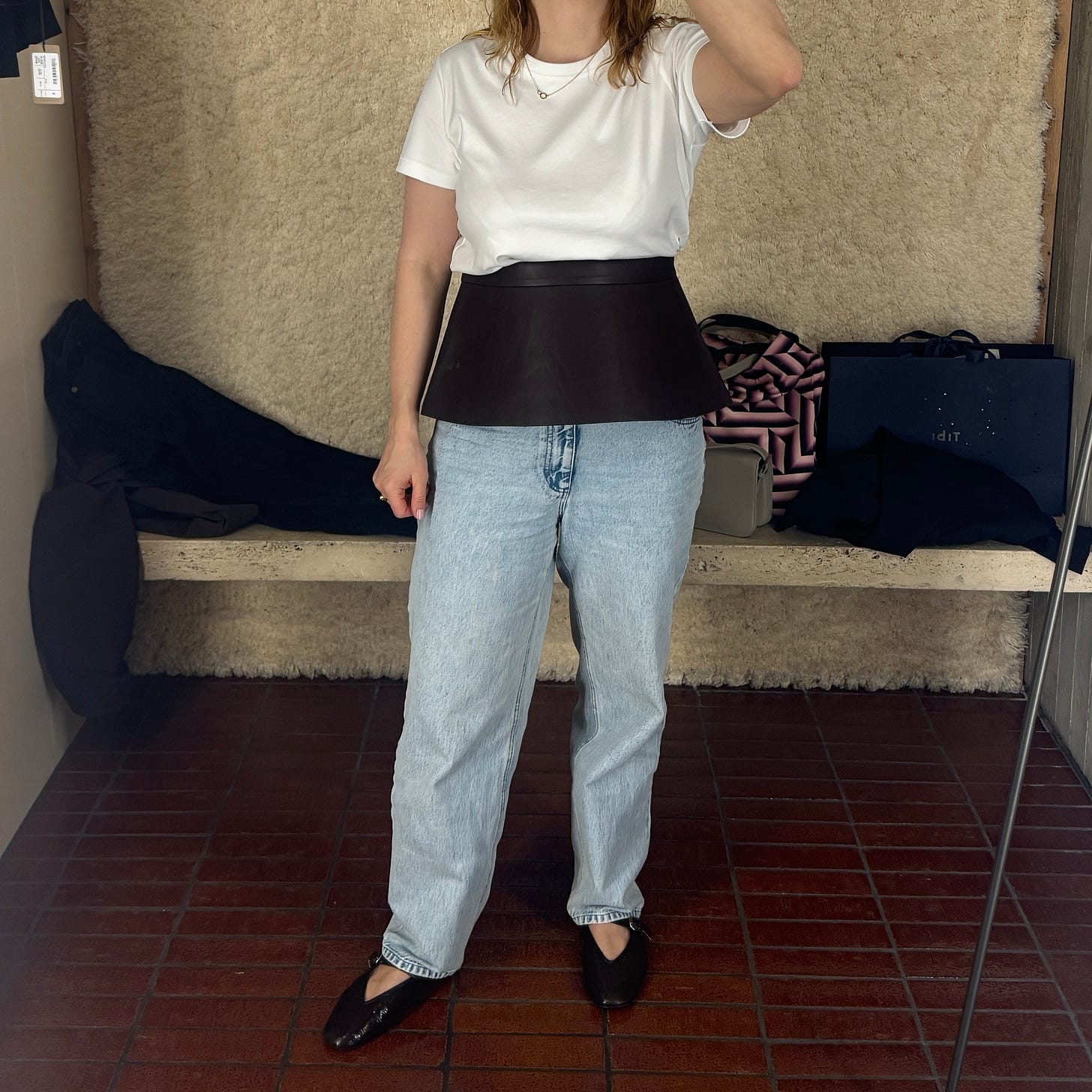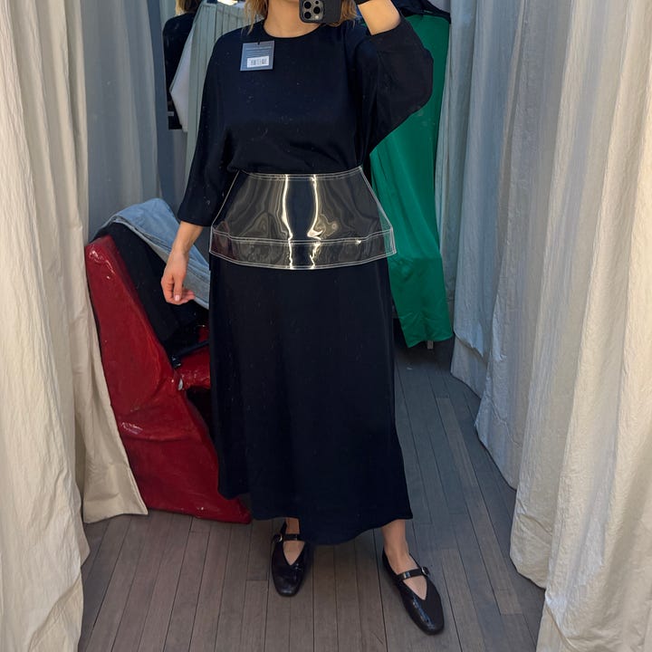 After Tibi, I stopped by Rachel Comey, and they had a skirt belt too, but with a slightly different vibe. They only had S and M sizes, and the M was too small for me and sat far too high, so I did not even consider it. Still, it was an interesting option but also a completely different vibe.