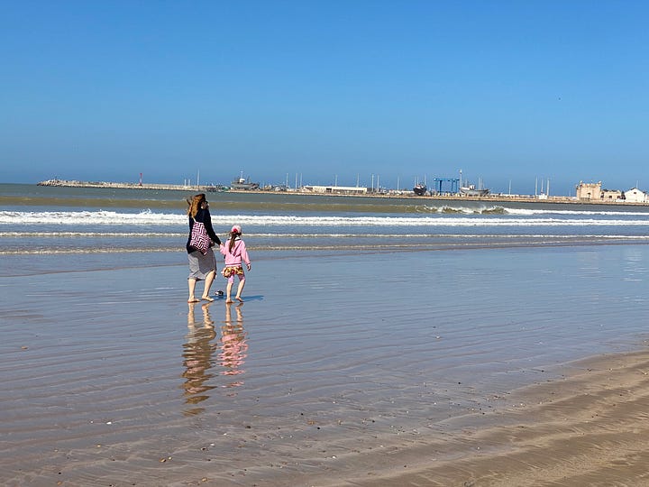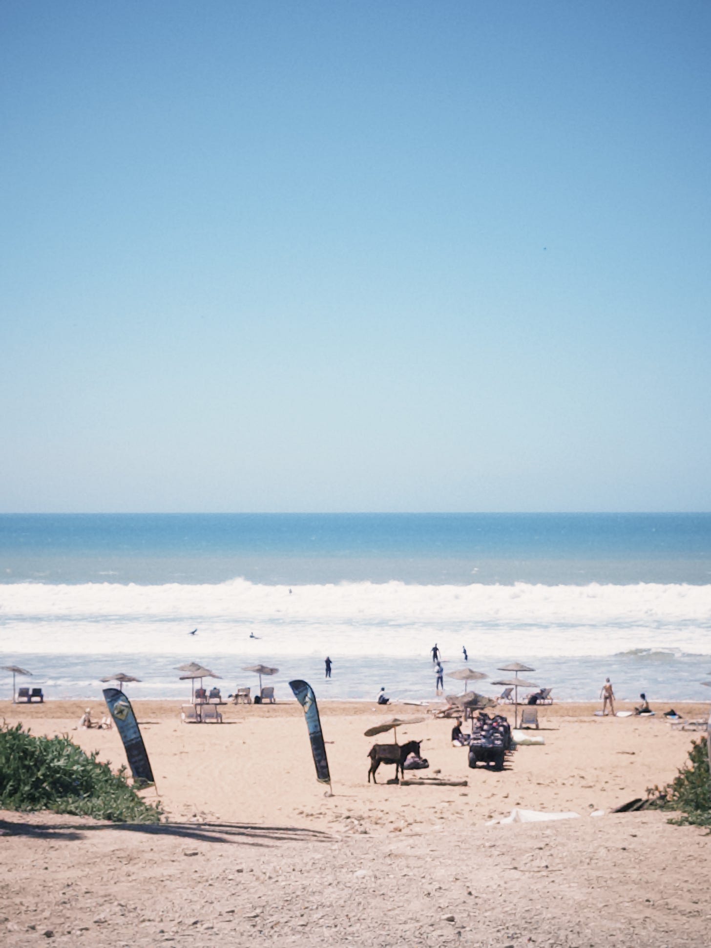 As it was very windy in Essaouira, we decided to drive to Imsouane, which is a 1.5-hour drive south. It is a small town that is essentially a surfer’s paradise. It has this laid-back vibe and a sandy beach, but the surfing itself is quite advanced. We asked for a lesson, and the coach talked us out of trying to surf there because we were too beginner for the high tide. It was still a nice place to chill, swim, and play in the sand with our little ones.