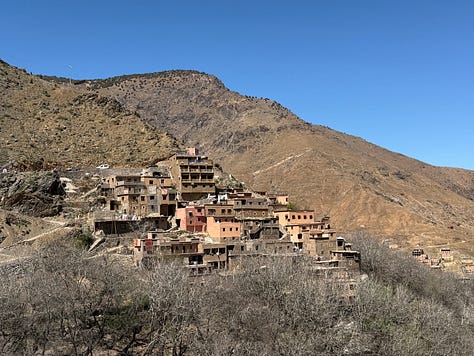 A drive of just about 90 minutes from Marrakech will take you to the mountains, where you can see snow-capped peaks. We drove to Imlil, saw the waterfalls, and passed by Kasbah du Toubkal, a hotel with an interesting story: its founders established a foundation that contributed significantly to infrastructure development in the surrounding villages.