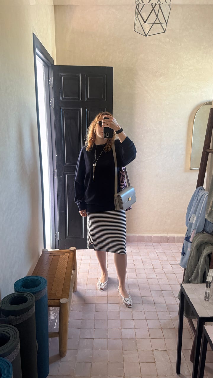 The Tibi jersey skirt was my true fundamental on this trip. It matches the vibe of Marrakech quite well and is relaxed, comfortable, but also refined. It can also be transformed into shorts by tying the skirt between your legs.
