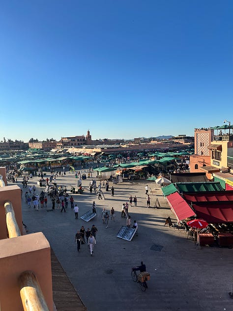 After this intense experience, we took a rest in a coffee shop with Moroccan mint tea, got acclimatized, and were ready to explore more. The medina is a massive labyrinth with fascinating souks and passages everywhere, culminating in Jemaa el-Fnaa square.