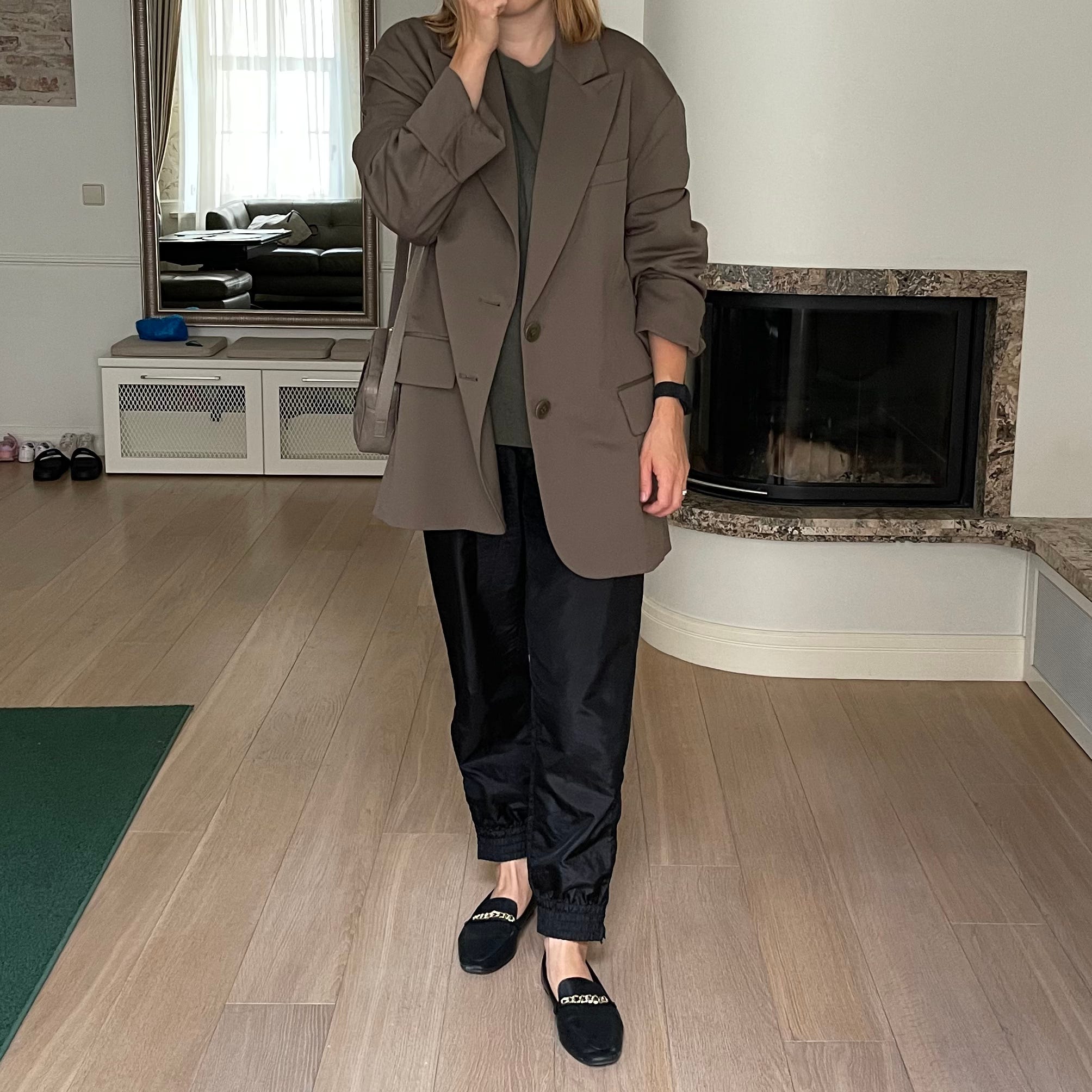 I owned one Liam blazer that I quickly snapped up on Vestiaire when it appeared there in 2021. It was a dark taupe tropical wool Liam blazer. The color washed me out, the fabrication didn’t quite work for my toddler-full lifestyle, and the size was too small for me (I got an S, which is why I couldn’t button it with the third button) - the joys of buying second-hand!