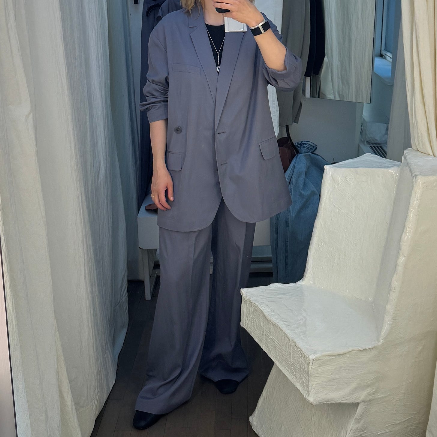 I saw this blazer on a Tibi fan and immediately thought: wow, this fabrication really leans into the Liam silhouette. As the name suggests, it’s drapey and lightweight, which means it’s fluid, and the dropped shoulders fall into a really nice slouch.